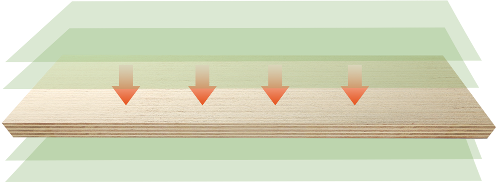 相鄰單板纖維垂直,順向層全齒接工藝,結構更穩(wěn)定。