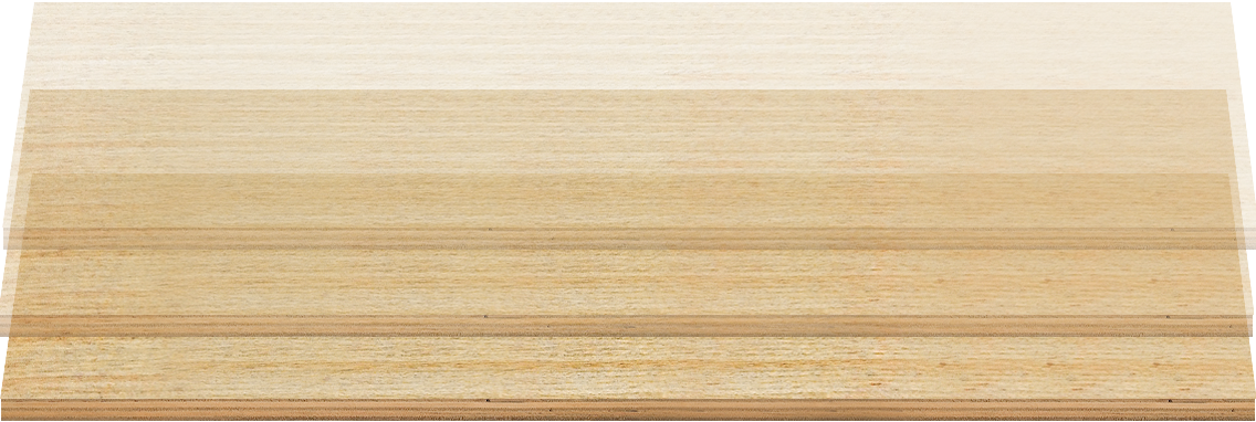 Longitudinal and horizontal arrangement, more stable structure相鄰單板纖維縱橫排布,品質層層可見