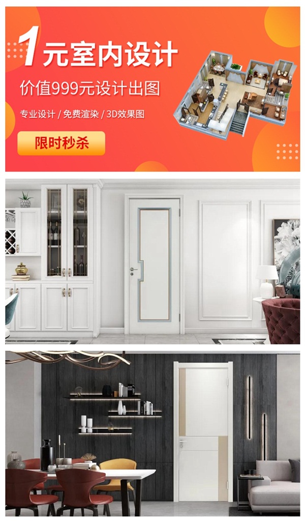 免漆木門現(xiàn)代XD007A、簡歐JO004A木門,只要支付6.6元認(rèn)購金,即可享受工廠活動價,加9.9元即送同款。