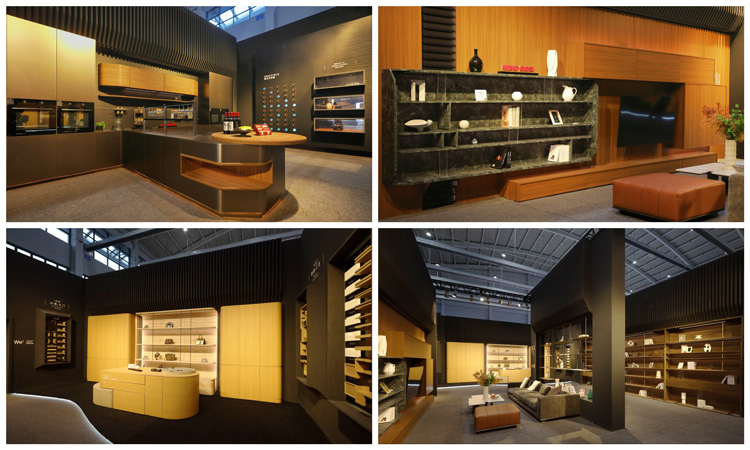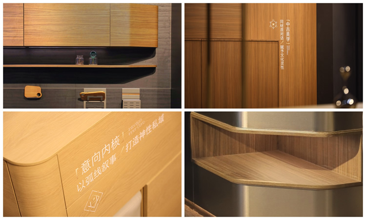 45度斜切結構、骨骼線條、弧形元素、ABA板材工藝……多元美學融合,呈現全新家居意境。應用上,ENF級環保,4.5米通頂家居,傳奇系列板材、第三代顆粒板、碳晶飾面板……為與會觀眾帶來高顏值、高個性化、高品質的整家美學方案。