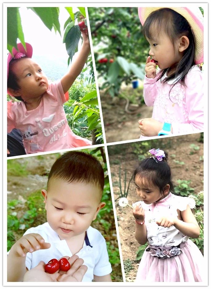 在茂密的櫻桃林里,一場采摘大戰也拉開序幕,大家先后采摘了各色不同品種的果實,隨行的“小鵬友”也不甘示弱,穿梭于櫻桃林中尋找自己的“獵物”。孩子們尋找著好吃、漂亮的果實,有的將櫻桃直接放入嘴中,有的送到爸爸媽媽的嘴里,在這個溫馨的“家庭日”,孩子與父母在活動中更貼近了彼此。甜甜的櫻桃中夾著濃濃的親情,讓人回味無窮。在青山環繞的櫻桃園中,大家紛紛拿起手中相機,留下美好的瞬間。